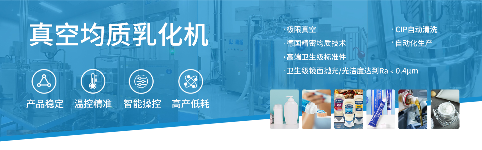 無錫精派機(jī)械成立于2009年,是一家高科技乳化 灌裝包裝生產(chǎn)線解決方案集成供應(yīng)商,致力于用 戶合規(guī)化、高效化、智能化產(chǎn)業(yè)升級(jí)。應(yīng)用行業(yè) 包括制藥醫(yī)療、寵物醫(yī)療、日化護(hù)理和醫(yī)院等。 應(yīng)用產(chǎn)品涵蓋水劑、膏劑、凝膠、液體制劑、粉 劑、注射劑等非無菌和無菌產(chǎn)品。